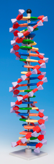 Consta de diferentes piezas codificadas en su forma, de diversos colores, que representan las bases nitrogenadas, glucosas pentagonales y fosfatos piramidales necesarios para la formación de la doble hélice del modelo de ADN