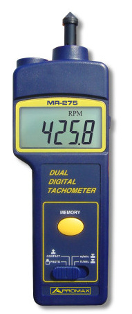 - 0,5 hasta 19.999 rpm / 1 rpm, como tacómetro de contacto