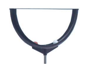 Incluye una bola de madera y otra de acero. Ambas alcanzan la misma altura pues ésta depende solamente de la velocidad de rotación.