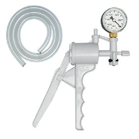Con vacuómetro, válvula de aireación y manómetro así como tubo de plástico de 60 cm y 6,5 mm Ø
