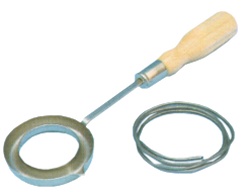 Para usar como bobina secundaria (una espira) de transformador, para fundir estaño. Canal circular de aluminio, con mango aislante de madera de 43 mm Ø y 240 mm de longitud