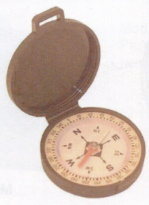 Brújula líquida con base y tapa de plástico negro.
