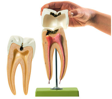 Separado en 3 partes que muestran la caries en estados incial y avanzado.