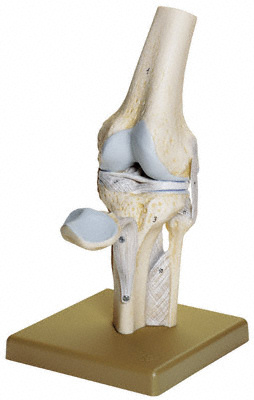 Tamaño natural, modelado en SOMSO-Plast., con ligamentos y meniscos. En una sola pieza, con base.
