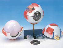 Esclerotica con cornea e inserciones musculares, túnica vascular con retina e iris, Humor vítreo, Cristalino.