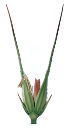 Secale cereale - Modelo aumentado 25 x, moldeado en SOMSO-Plast. El modelo desarmable (4) muestra la estructura típica de una espiguilla cariópside anemófila: glumas, lemas aristadas, glumelas superiores, cuerpo cavernoso y flores hermafroditas (3 estambres acurcharadas, ovario con óvulo y 2 estigmas en forma de pluma), con base.