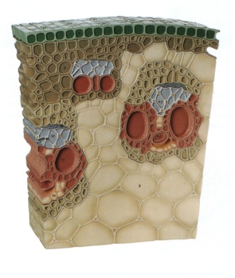 Zea mays - Maíz, ampliado, modelo aumentado 550x, moldeado en SOMSO-Plast, en una pieza, con base.