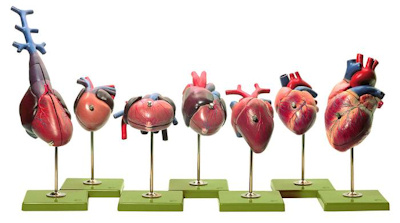 Modelos moldeados en SOMSO-Plast. Muestra la estructura interna con la dirección de la sangre también marcada. 7 modelos de las siguientes especies: pez (esox lucius), rana (rana esculenta), tortuga (emis orbicularis), cocodrilo (crocodylus niloticus), águila real (aquila chrysaí«tos), perro (canis lupus familiaris) humano (homo sapiens). Cada modelo está divido en dos partes (para ver exterior y corte seccional del corazón).