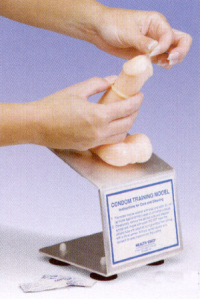 Para demostrar el uso correcto del preservativo, con un modelo fiel al natural. Consiste en un pene erceto, 12 condones o preservativos, una jeringa y semen artificial (líquido fluorescente ultravioleta) para simular la eyaculación. Montado en un soporte con ventosas y con una bolsa para transporte