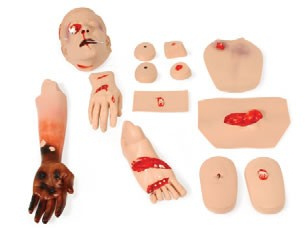 Cubre múltiples y diversos traumatismos, contusiones y heridas en la cabeza, clavículas, brazo, mano, abdomnen, fémur,etc.