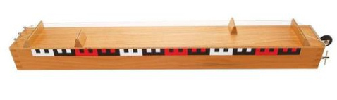 Aparato de demostración para el estudio de la relación entre la altura del tono, la longitud de la cuerda, la creación de tonos superiores y la división harmónica por medio de división de la cuerda y la dependencia de la altura del tono con la tensión de la cuerda..