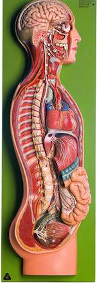 Representación en relieve de la parte derecha corporal, en especial del segmento intratorácico, plexo cardíaco, plexo hipogástrico inferior (pélvico)