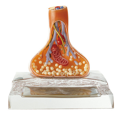 Representación de los neurotúbulos, neurofilamentos, vesículas sinápticas así como estructuras de membranas presinápticas y postsinápticas