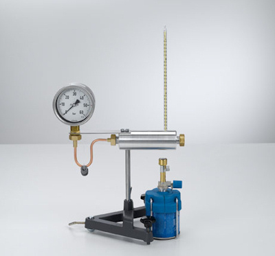 El aparato de vapor de alta presión se utiliza en el experimento P2.4.2.2 para medir presiones de hasta 50 bar.