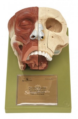 Mitad derecha del modelo: representación de la musculatura de la cara y de la mucosa nasal con tabique nasal extraíble.