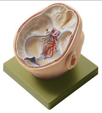 Representación de la duramadre, de los 12 pares de nervios craneales y de la arteria basilar con ramificaciones.